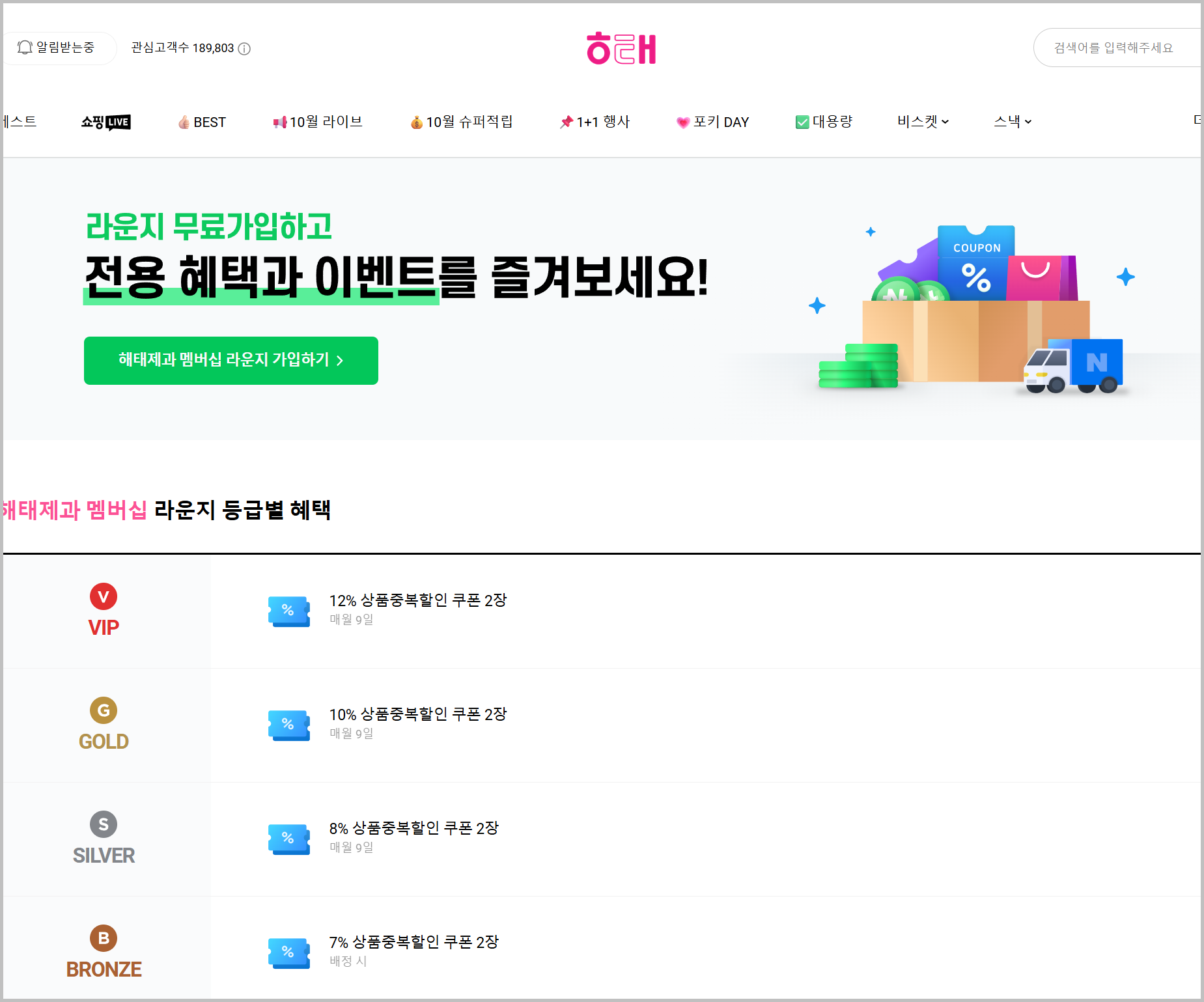 이 외에도 회원 등급에 따라 추가 혜택이 달라집니다. 예를 들어 구매 금액이 많거나 후기 작성이 활발한 고객은 상위 등급으로 올라가며, 월 단위로 정기 쿠폰을 지급받거나 특별 할인 상품을 이용할 수 있습니다.