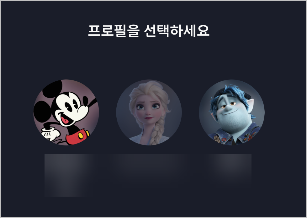 프로필 선택 화면은 아래와 비슷한 형태로 나타납니다. 각 프로필에 표시된 아이콘이나 이름을 보고, 성인인증을 적용하고 싶은 프로필을 선택해 주면 됩니다.
